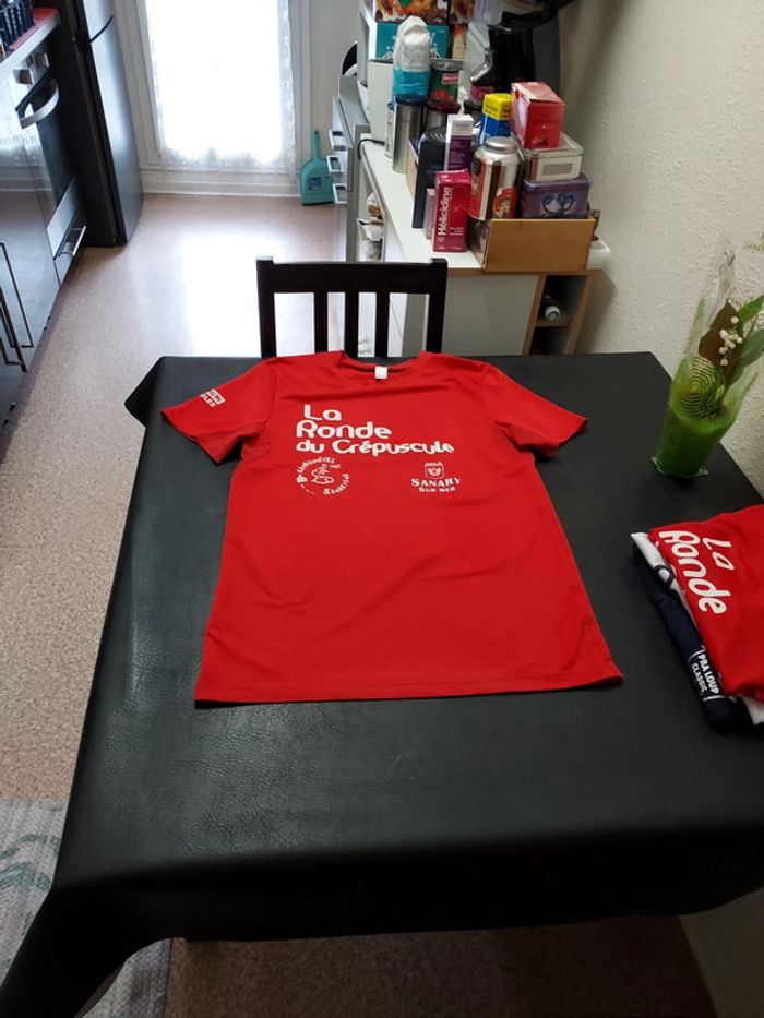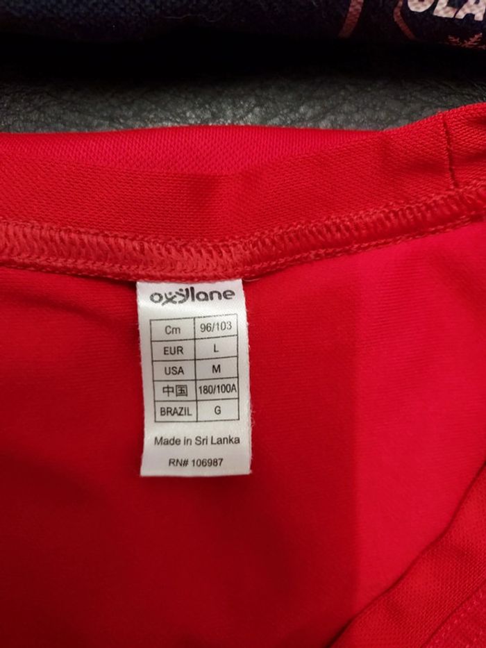 En très bon état Un des 2 tee-shirts Oxylane est un peu décoloré sur le bas du tee-shirt.