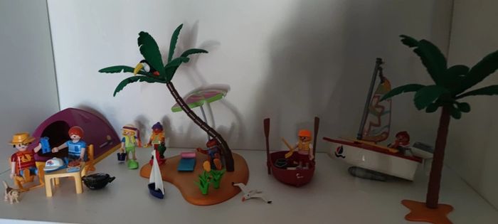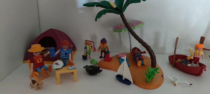Lot Playmobil camping, livré avec les baigneur, tente, voiler, barque...
