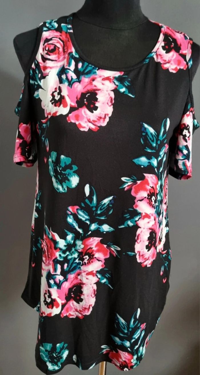 Tee-shirt imprimé épaules dénudées taille S très peu porté