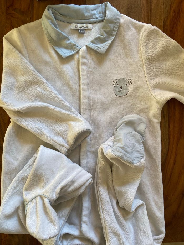 Pyjama en velours Blanc / petit ours Du pareil au même 18 mois Porté mais peu encore être mis sans problème.
