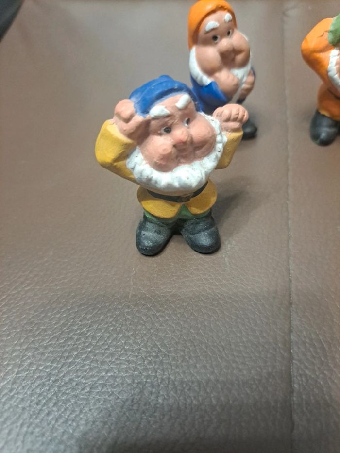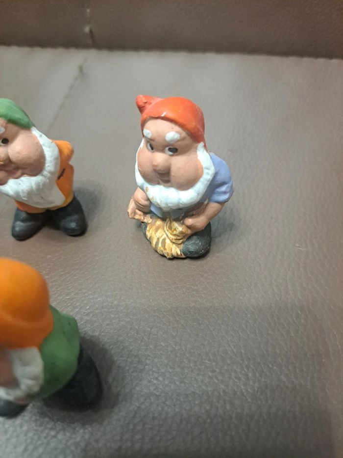 5 anciennes figurines Blanche Neige Plâtre en céramique 5cm Année 60 Vintage Disney 7 nains