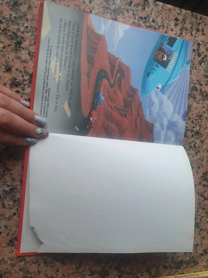 Livre Cars Défauts : coins abîmé, derrière page blanche déchirer( voir photos)