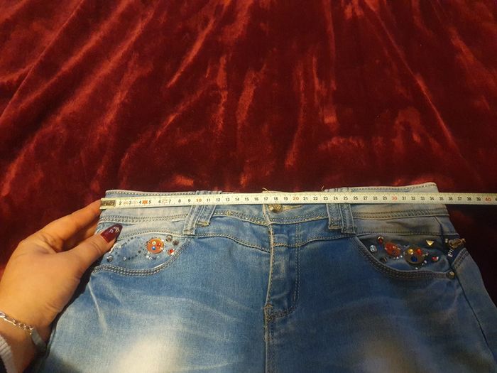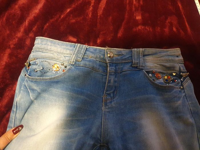 Jeans slim Possibilité de resserré la taille Manque 1 strass a la poche (voir photo )