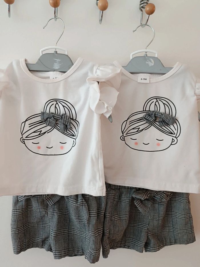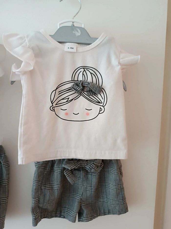 Bonjour je vends deux petits ensembles short magnifique porté avec des collants noirs En parfait état Taille 6/9 mois