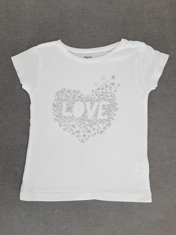T-shirt manches courtes 4 ans blanc motif cœur gris clair inscription Love In Extenso - photo numéro 1