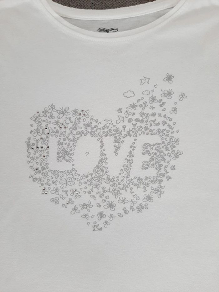 T-shirt manches courtes 4 ans blanc motif cœur gris clair inscription Love In Extenso - photo numéro 2