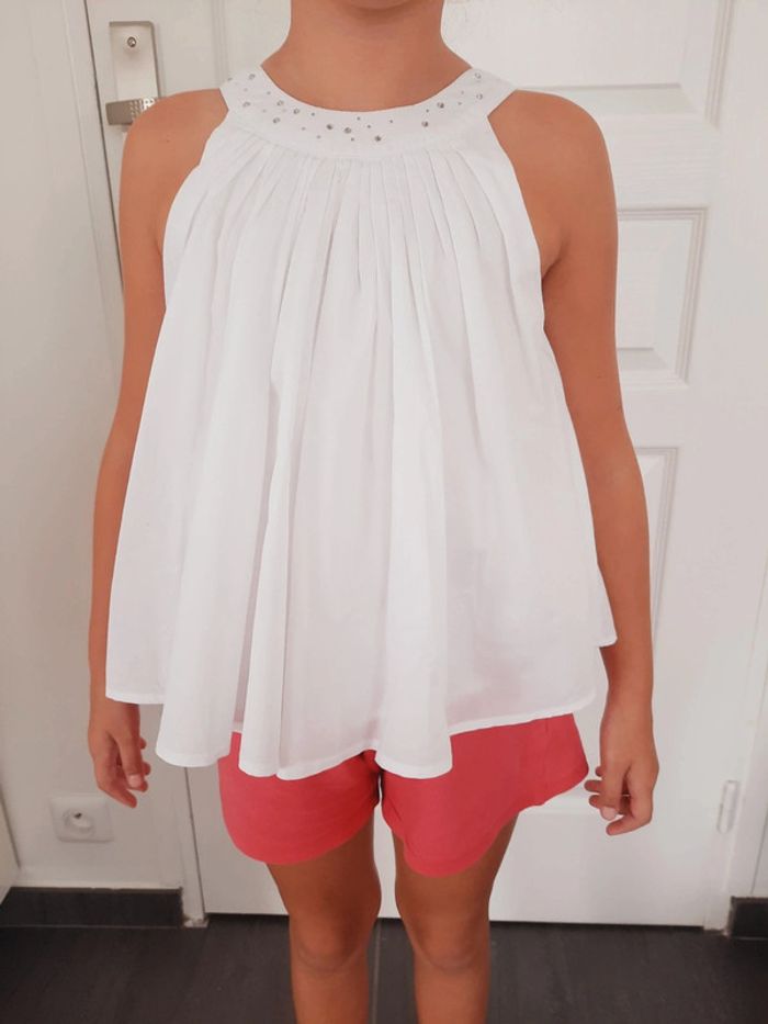 Tunique à enfiler sans manches Marese 5 ans Col avec strass 100% coton, doublée Neuve sans étiquette #adelaide7624vetementsfille5ans