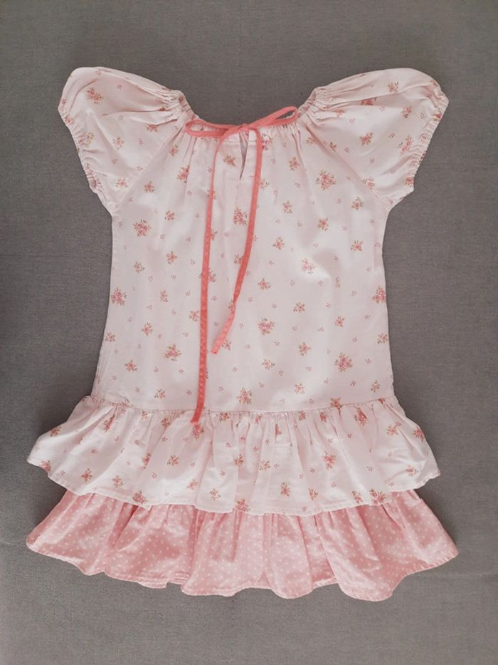Robe Petit Bateau 5 ans rose clair fleurie manches courtes et bas volants - photo numéro 2