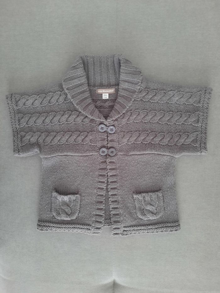 Gilet grosses mailles manches courtes Vertbaudet gris 5 ans - photo numéro 1