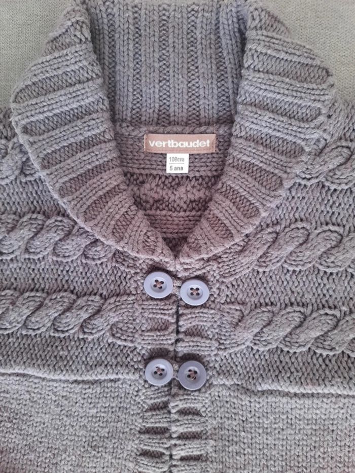 Gilet grosses mailles manches courtes Vertbaudet gris 5 ans - photo numéro 2