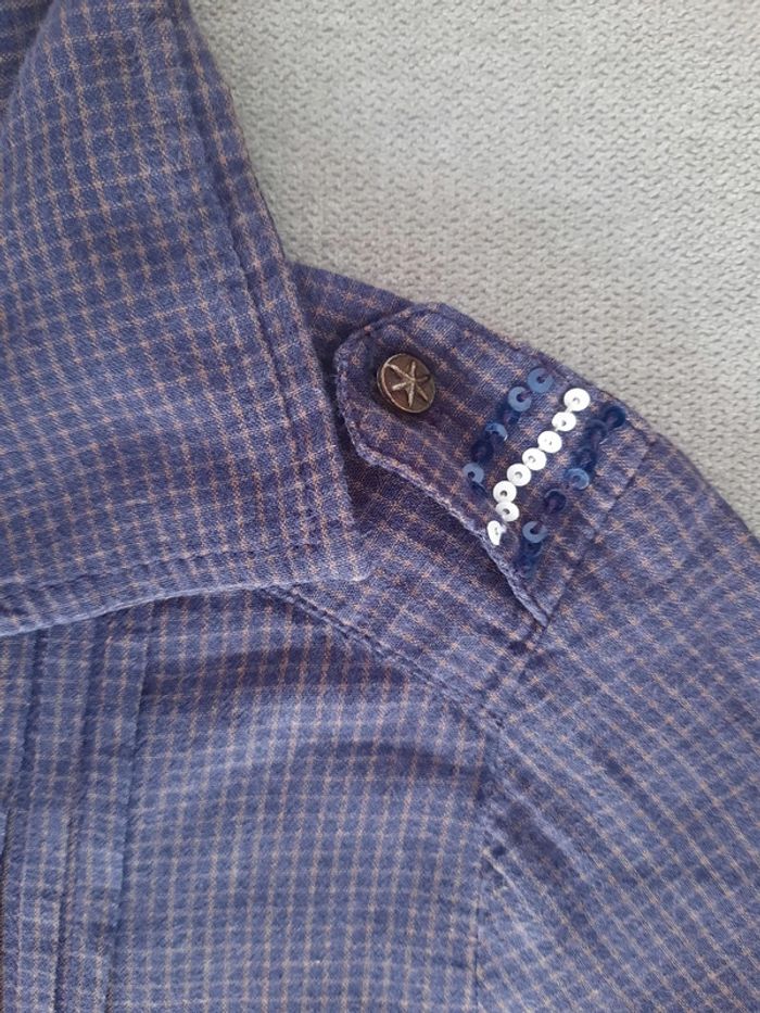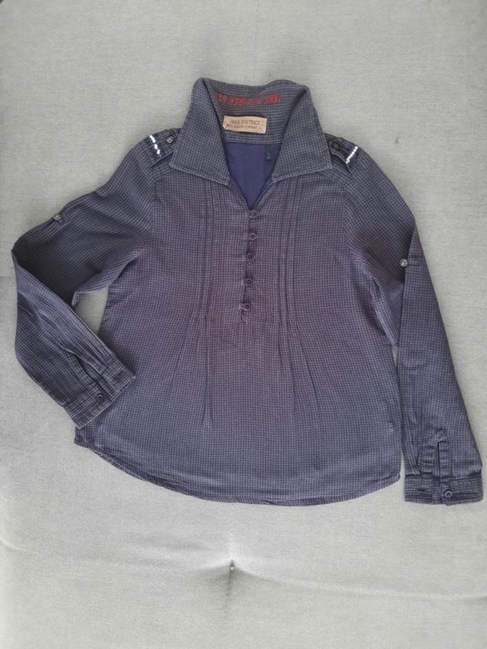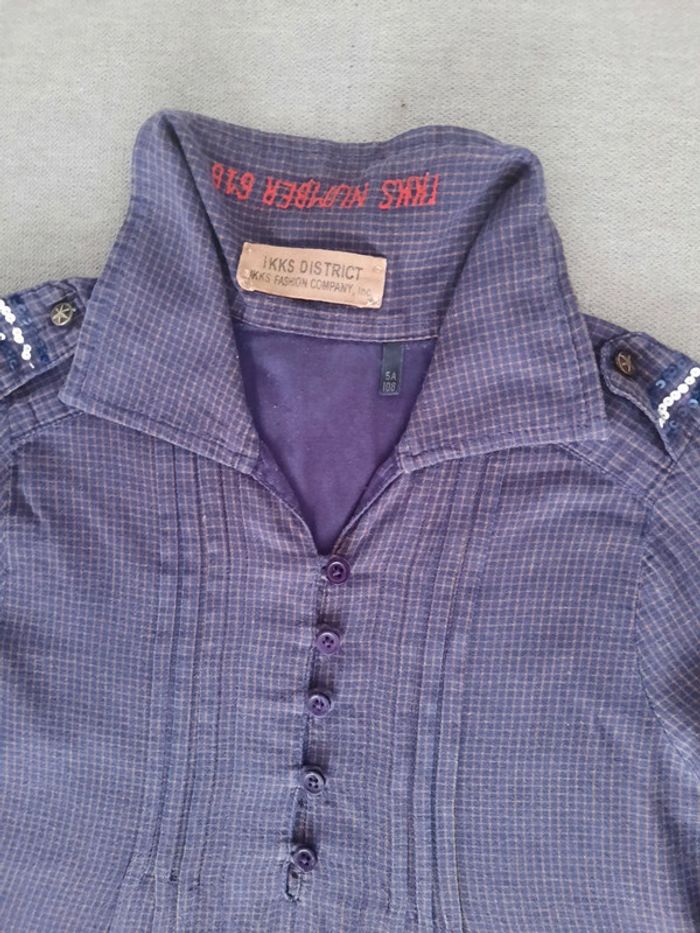 Chemisier à manches longues IKKS 5 ans Bleu marine à petits carreaux A enfiler : fermeture par bouton en haut du chemisier Sequins sur les épaules Manches retroussables Entièrement doublée 100% coton Très bon état #adelaide7624vetementsfille5ans