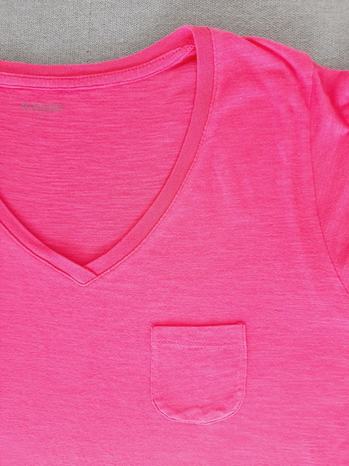 T-shirt manches courtes encolure en V en coton rose fuschia taille L In Extenso neuf - photo numéro 2