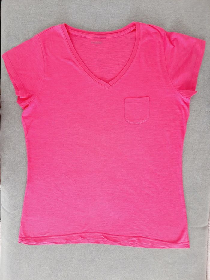 T-shirt manches courtes encolure en V en coton rose fuschia taille L In Extenso neuf - photo numéro 1