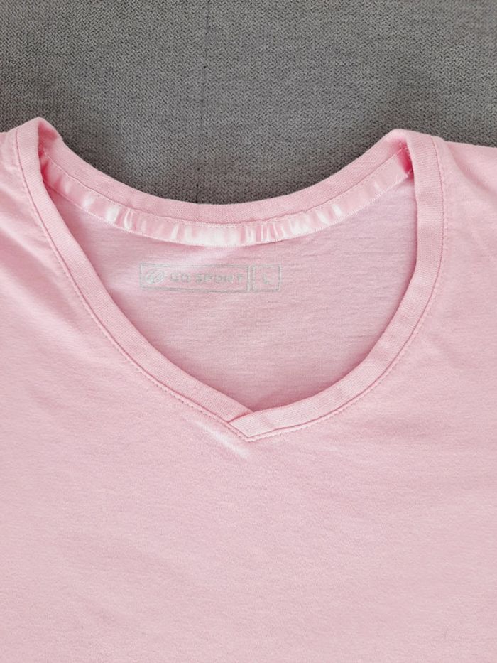 T-shirt manches courtes encolure en V taille L en coton rose clair Go Sport neuf - photo numéro 2