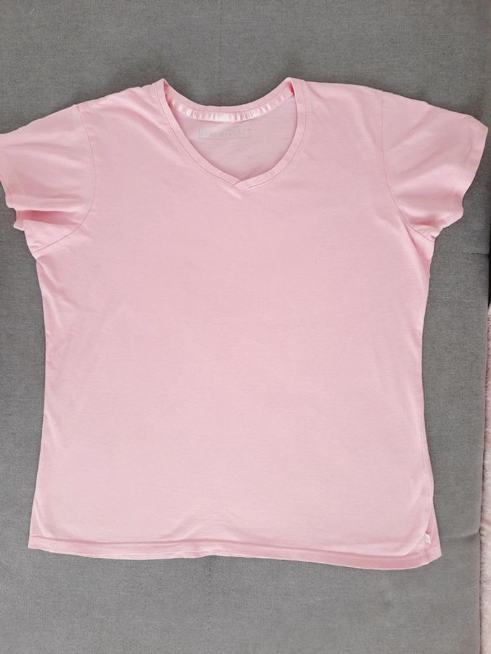 T-shirt manches courtes encolure en V taille L en coton rose clair Go Sport neuf - photo numéro 1