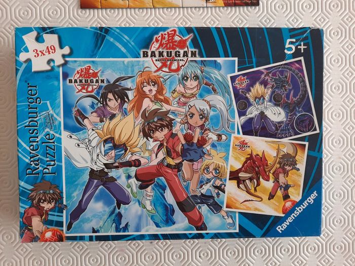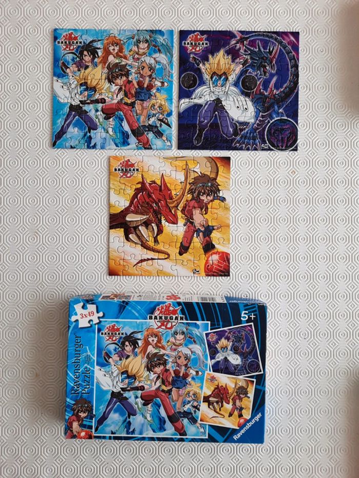 3 puzzles Ravensburger Bakugan battle brawler 49 pièces Dimensions des puzzles : 17.8 cm x 17.8 cm 5 ans et + Les puzzles sont en parfait état La boite est en très bon état mais à un coin légèrement abîmé #adelaide7624puzzles