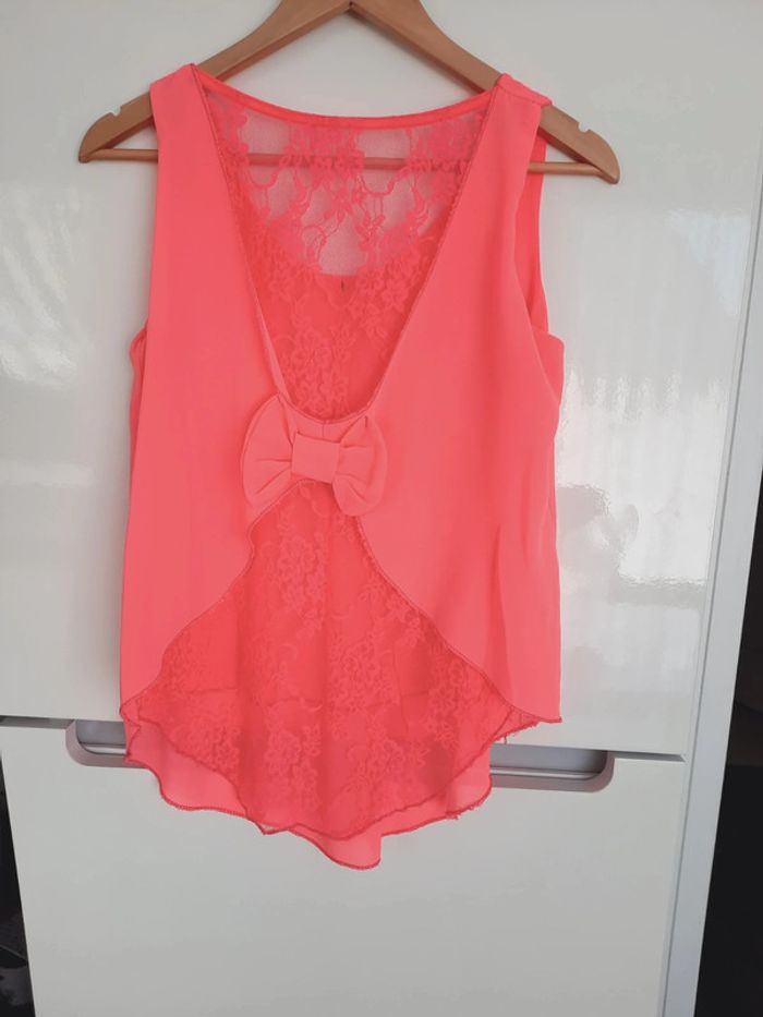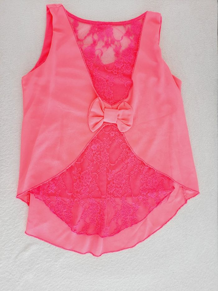 Tunique rose fluo effet évasé en bas Dentelle et gros noeud au dos Taille 36 Très bon état #adelaide7624vetementsfemme36