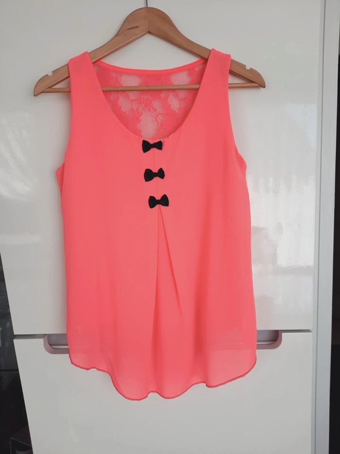 Blouse roze fluo effet évasé, avec dentelle et gris noeud au dos taille 36 - photo numéro 1