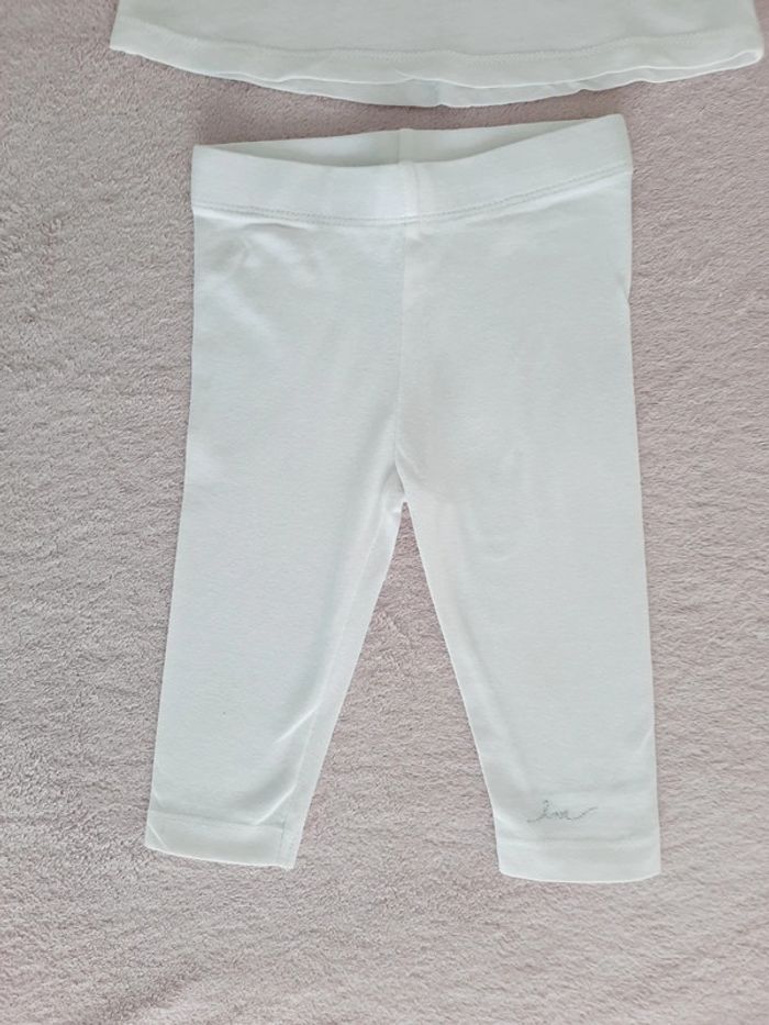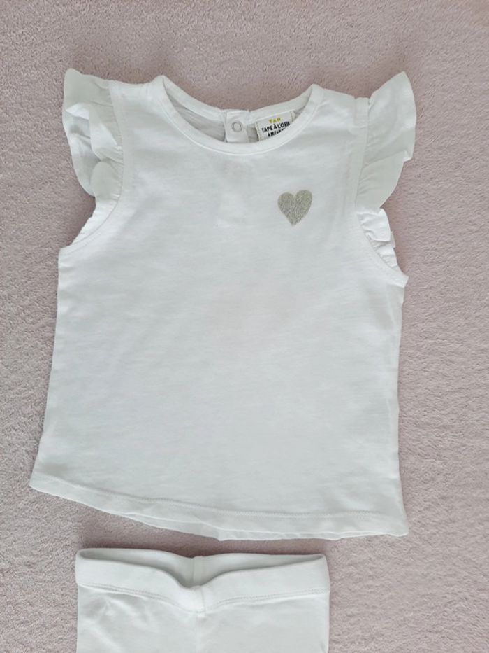 Ensemble TAO 6 mois blanc : Débardeur manches volantées avec coeur pailleté et legging - photo numéro 3