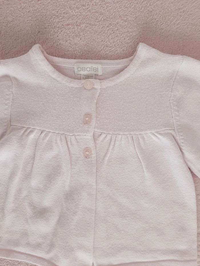 Gilet 3 boutons manches ballon rose clair Okaïdi 6 mois - photo numéro 2