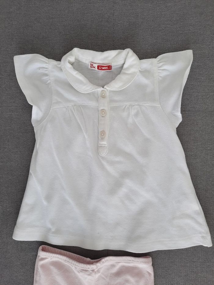 Ensemble 2 pièces Du Pareil au Même 12 mois Polo blanc à manches volantées évasé en bas Legging long rose clair Très bon état #adelaide7624vetementsfille12mois