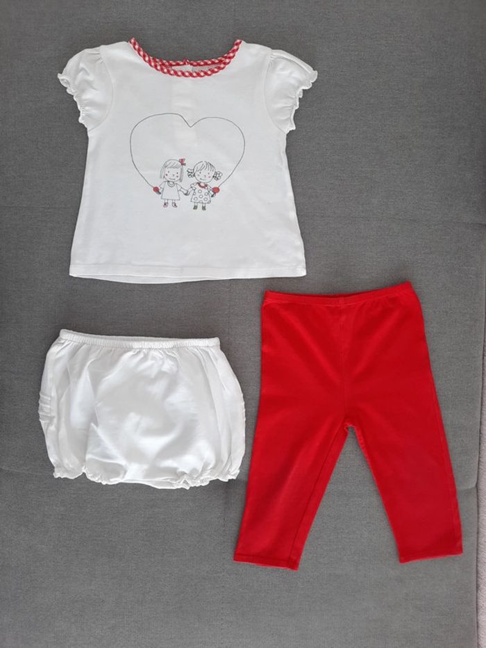 Ensemble 3 pièces 12 mois Du Pareil au Même rouge blanc : T-shirt, legging, short bouffant