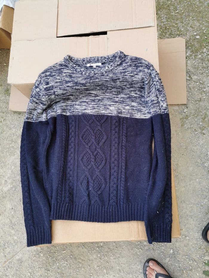 Pull bicolore tressé