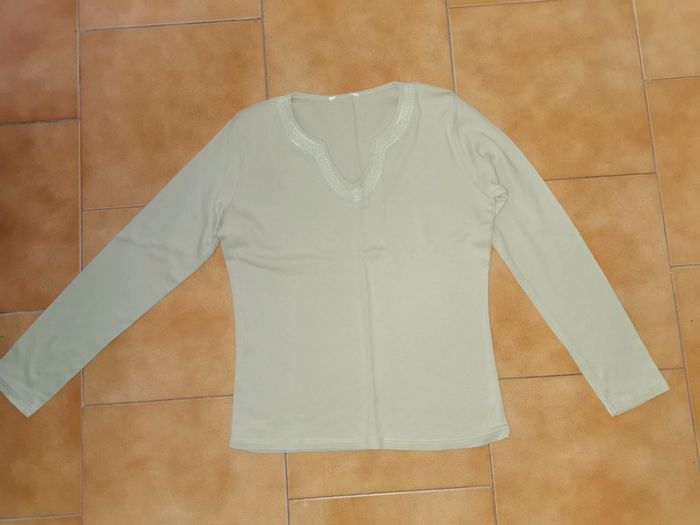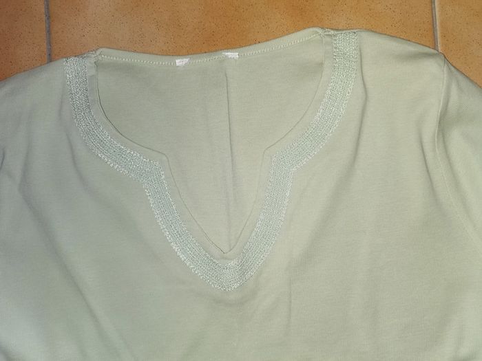 Pull vert clair broderie - photo numéro 2