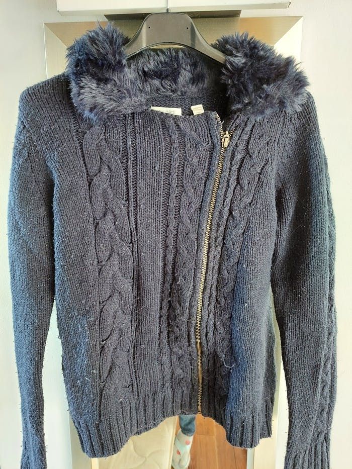 📌Si c'est votre première commande utiliser le code parrainage dans mon profil vous aurez une réduction 📌Gilet zippé en biais, okaidi 12ans, col imitation fourrure, bleu nuit avec reflet bleu brillant 📌Bon etat, quelques bouloches #fille12_mondressing11_bv Boite J