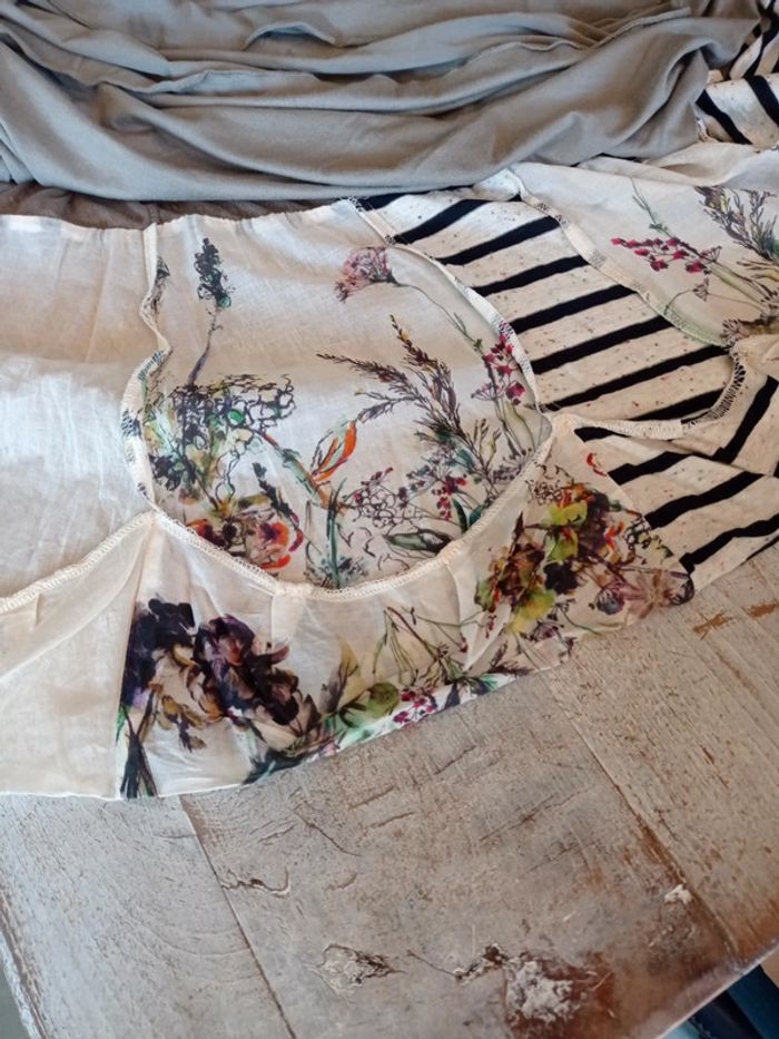 Doublée Longueur totale 70 Encolure carrée Différents tissus Largeur sous poitrine 38 cm Très bon état