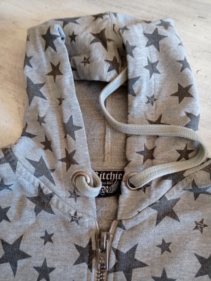 Très bon état fermeture éclair métal 2 poches Coton Capuche attenante Longueur dos 60 CMS Épaules 46 cm Manches 60 cm