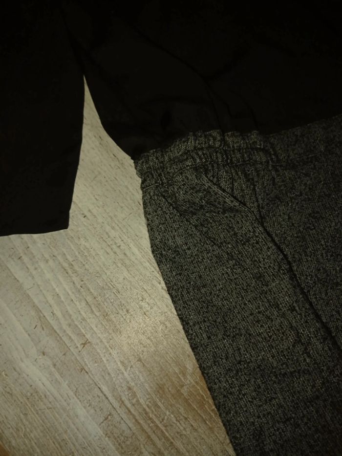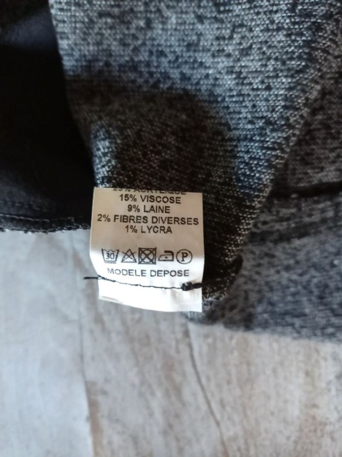 Comme neuf Haut tissu léger Bas tissu tweed Deux poches côtés Légèrement elastiquee à la taille Poche poitrine Manches trois quarts Longueur dos 90 cm Fente dos