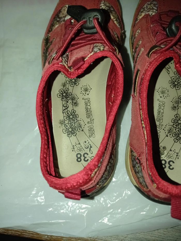 Très bon état Lacets élastiques À enfiler ne s'ouvrent pas Cuir et tissu fleuri