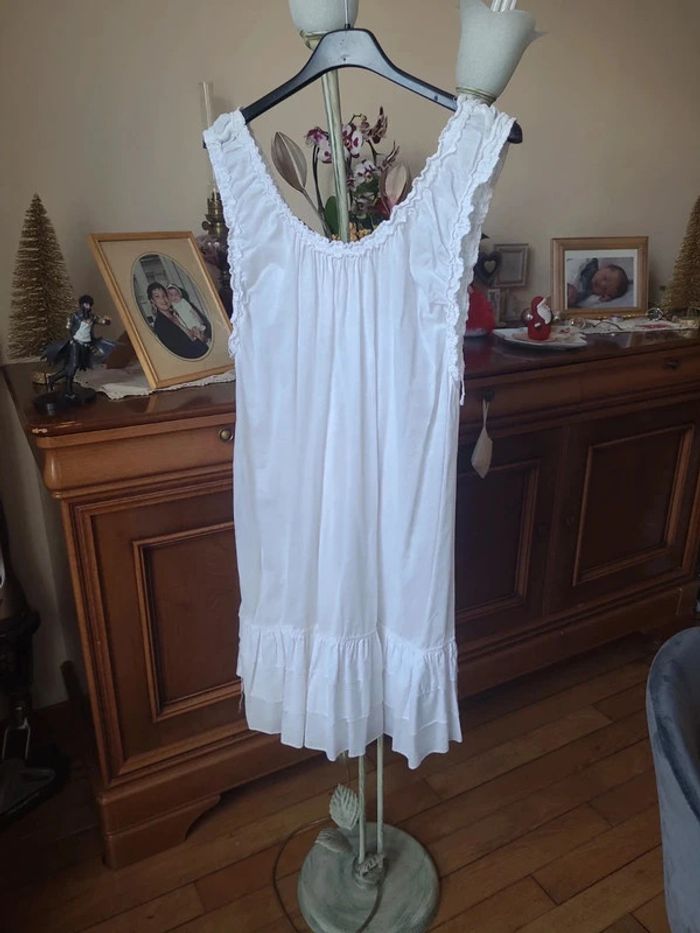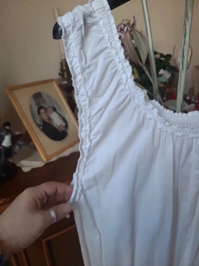 ⬇️mes autres annonces pour femme en taille 40 👉 #cg89femme40 😁 réductions activées des 2 articles ! une jolie robe blanche avec un volant pour cet été. Elle mesure 87 cm de longueur et 61 cm aisselle à aisselle En très bon état #taille40 #robedete #robeblanche #robe