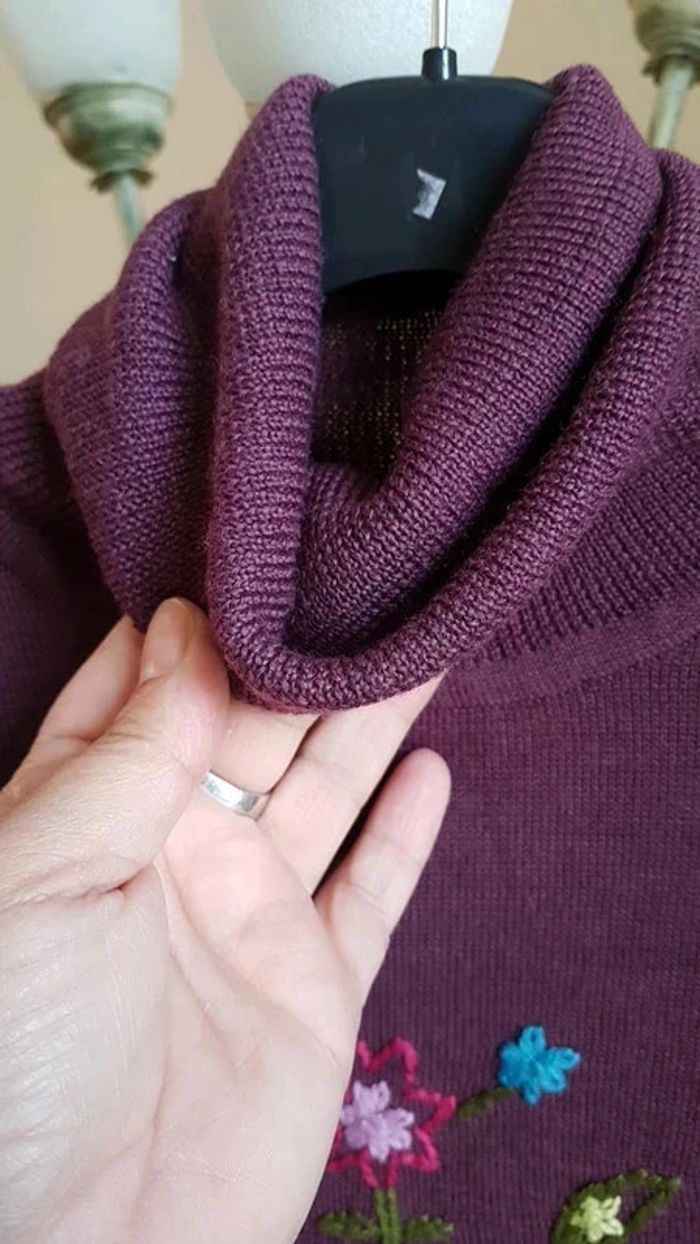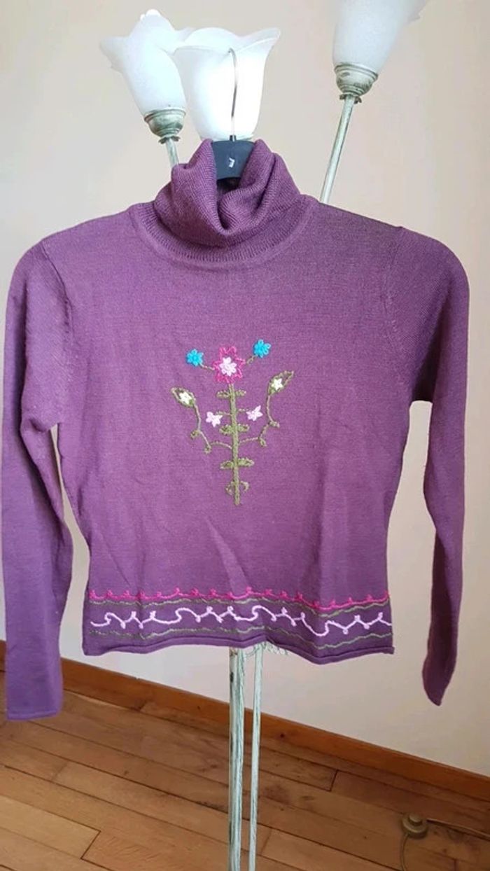 ⬇️mes autres annonces pour femme en taille 40 👉 #cg89femme40 😁 réductions activées des 2 articles ! un pull à col roulé violet et broderie fleurs multicolore devant. Très bon état, marque Etam, taille 40 #pull #colroule #etam #taille40