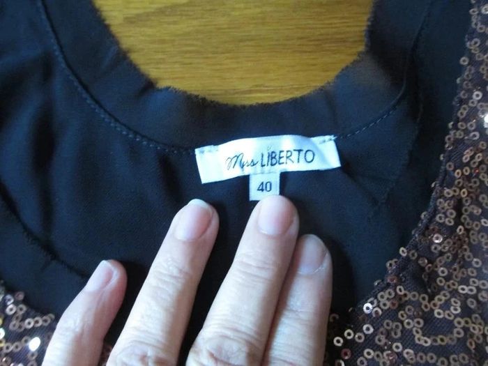⬇️mes autres annonces pour femme en taille 40 👉 #cg89femme40 😁 réductions activées des 2 articles ! un très beau tshirt ou blouse à paillettes doré et noir "Make me shine". Le dos en voile superposé, il est de couleur noir (la couleur n'est pas belle sur la photo) En taille 40, très bon état, marque miss liberto #tshirt #blouse #paillette #missliberto #taille40