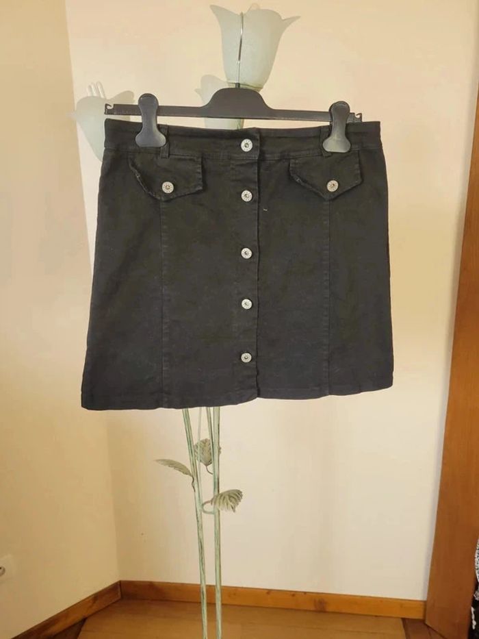 ⬇️mes autres annonces pour femme en taille 40 👉 #cg89femme40 😁 réductions activées des 2 articles ! Une jupe noire en jean boutonnée devant et fausse poche. En très bon état, taille 40 #jupe #jupeenjean #taille40
