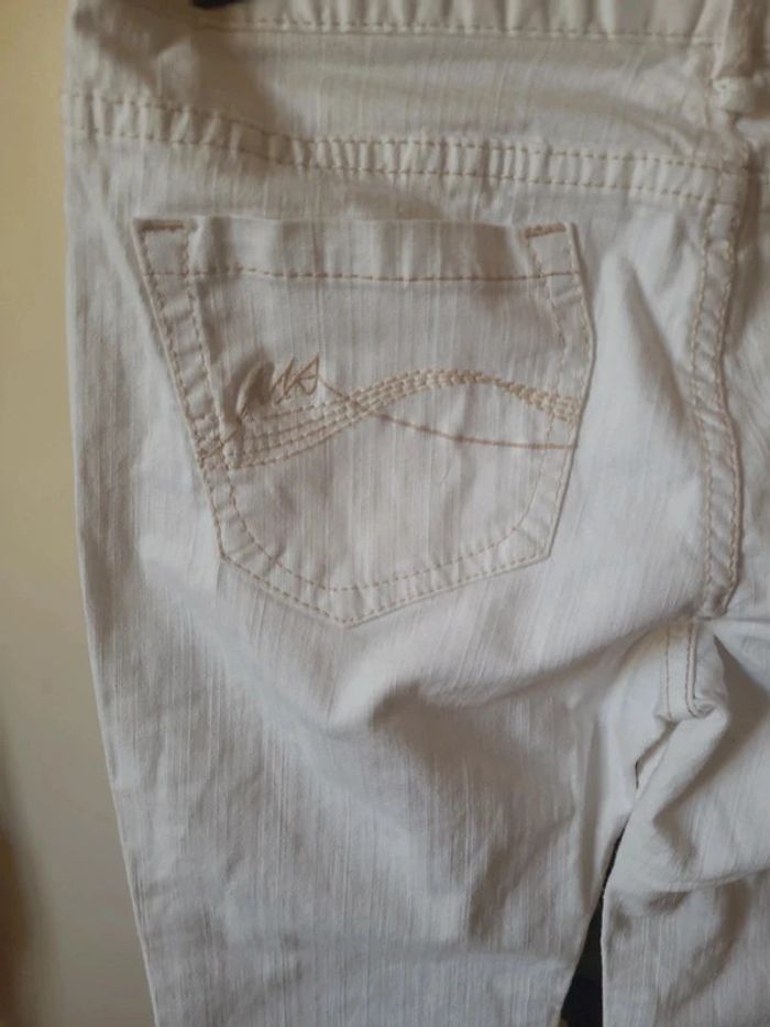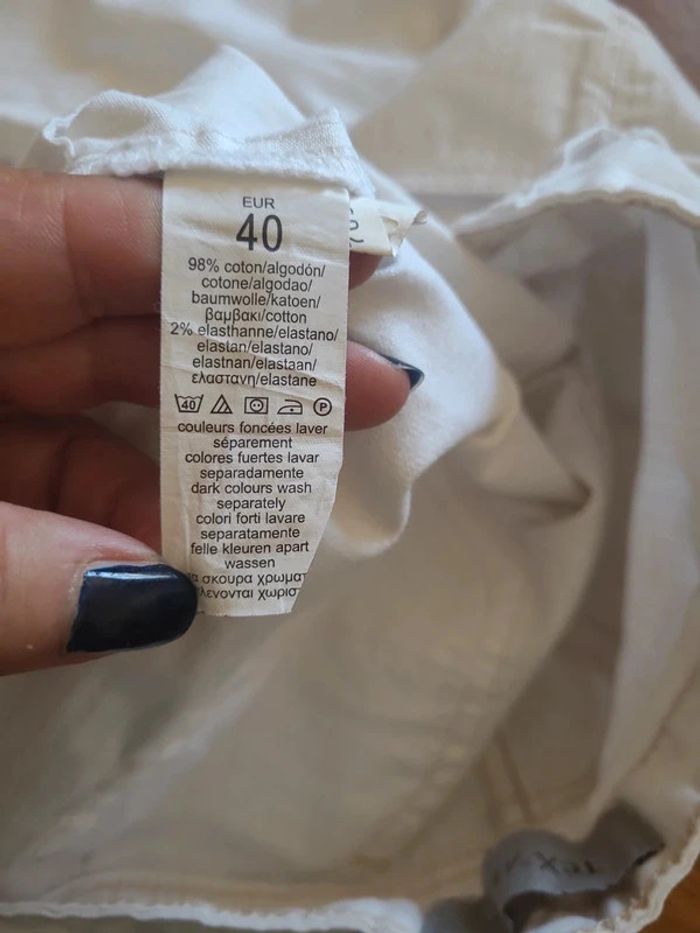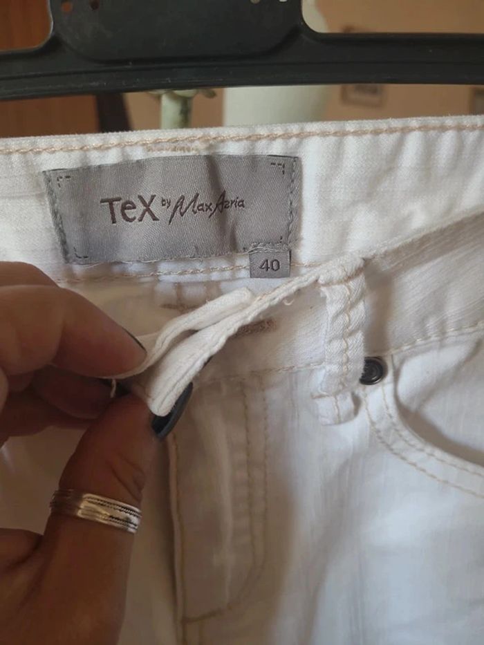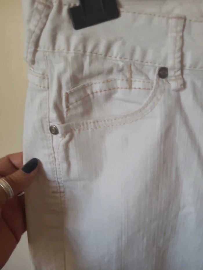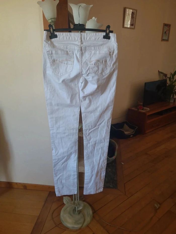⬇️mes autres annonces pour femme en taille 40 👉 #cg89femme40 😁 réductions activées des 2 articles ! Un jean blanc avec les coutures de couleur doré. il mesure 39 cm taille, 105 cm longueur et 16 bas. En très bon état, taille 40 et marque Tex #jean #taille40 #tex