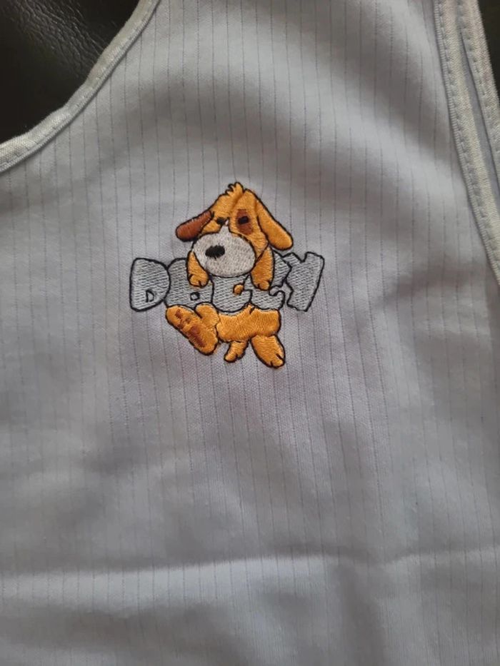 ⬇️mes autres annonces pour femme en taille 40 👉 #cg89femme40 😁 réductions activées des 2 articles ! Un débardeur bleu pale avec une broderie sur la poitrine. Il mesure 43 cm aisselles à aisselles et 52 cm de longueur très bon état, taille 40 #debardeur #taille40