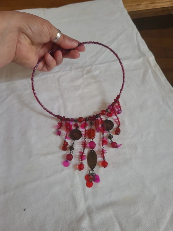➡️mes autres annonces de bijoux et accessoires👉 #cg89bijoux 😁réductions activées des 2 articles ! un collier ajustable avec des perles de rocailles, les pendants fushia sont magnifique avec toutes les formes différentes. en très bon état #collier #rasdecou #bijoux #perle