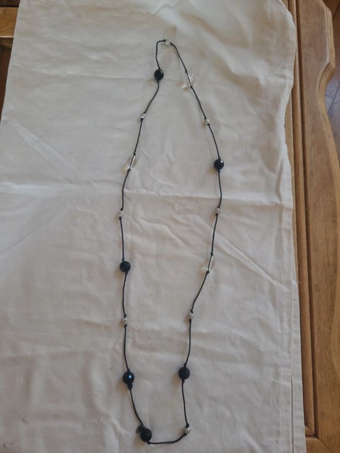 ➡️mes autres annonces de bijoux et accessoires👉 #cg89bijoux 😁réductions activées des 2 articles ! collier de perle noire et transparente, elles sont enfilées sur un cordon noir. Vous pouvez le porter en sautoir ou faire 2 tours. Bon état #colier #sautoir #perle #bijoux