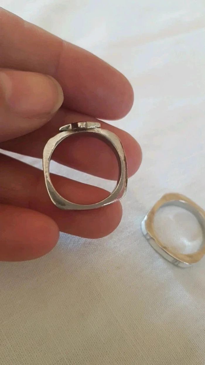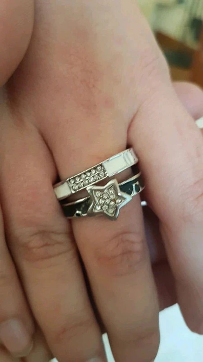 ➡️mes autres annonces de bijoux et accessoires👉 #cg89bijoux 😁réductions activées des 2 articles ! 2 bagues originales par leur forme carré à l'extérieur. 1 noire avec une étoile et strass 1 blanche avec barrette en strass à porter ensemble ou séparé, à vous de voir. taille 56-57 bon état #bague #bijoux #strass