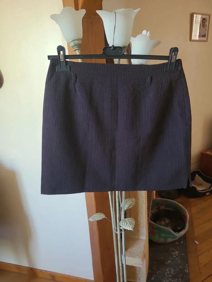 ⬇️mes autres annonces pour femme taille 38👉 #cg89femme38 😁 réductions activées des 2 articles ! une jupe violette avec de fines rayures blanches. des petites fentes sur le coté Elle mesure 37 cm taille à plat et 41 longueur bon état, marque Jennyfer, taille 38