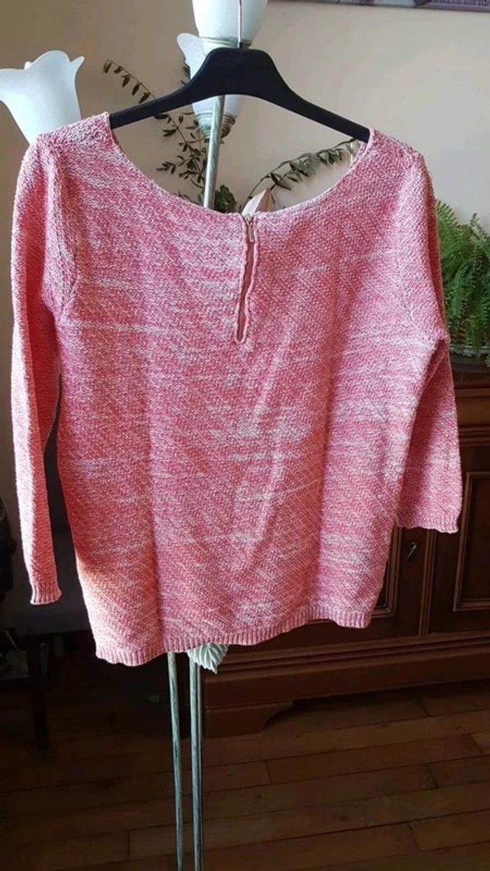 ⬇️mes autres annonces pour femme taille 38👉 #cg89femme38 😁 réductions activées des 2 articles ! pull e<ou t-shirt en coton rose chiné, avec un très beau col rond. il n'a l'air de rien mais il est "top". Taille 38, très bon état