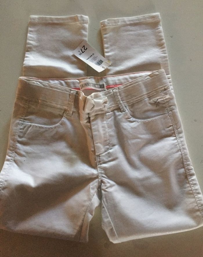 📌Si c'est votre première commande utiliser le code parrainage dans mon profil vous aurez une réduction 📌Blanc nacré brillant 📌Neuf okaidi 12 ans Pantalon 7/8eme skinny Taille réglable #fille12_mondressing11_bv Boite F