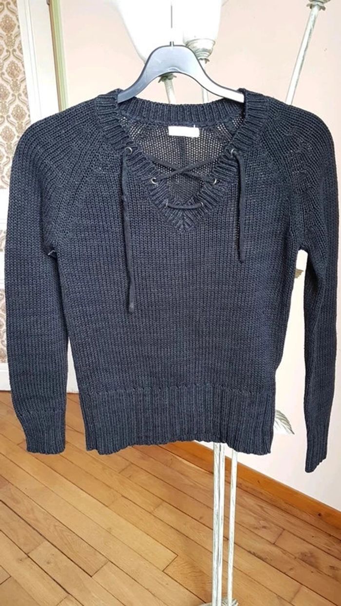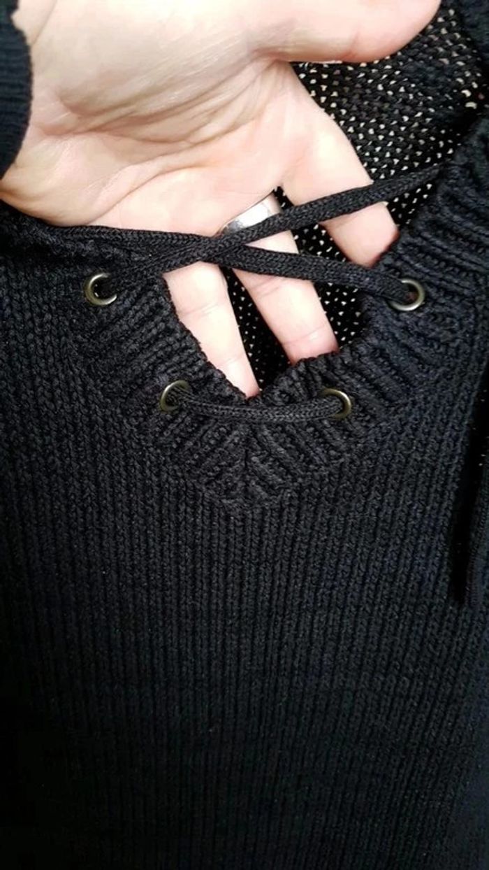 ⬇️mes autres annonces pour femme taille 36👉 #cg89femme36 😁 réductions activées des 2 articles ! Un pull en coton noir avec laçage devant bon état, taille36 #pullencoton #pulltaille36 #pulloriginal #pullnoir #hauttaille36