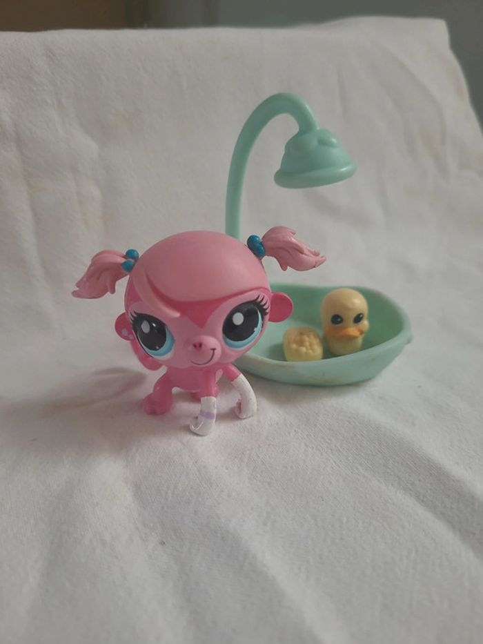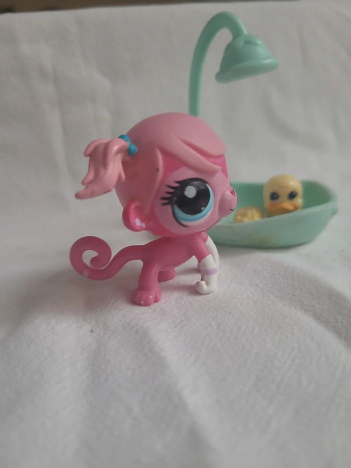 ⬇️mes autres annonces de petshop👉 #cg89petshop 😁 réductions activées des 2 articles ! un singe petshop rose qui va prendre son bain. Bon état #petshop #singepetshop #lps #chimpanzepetshop