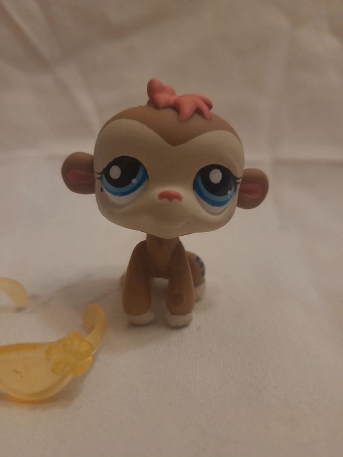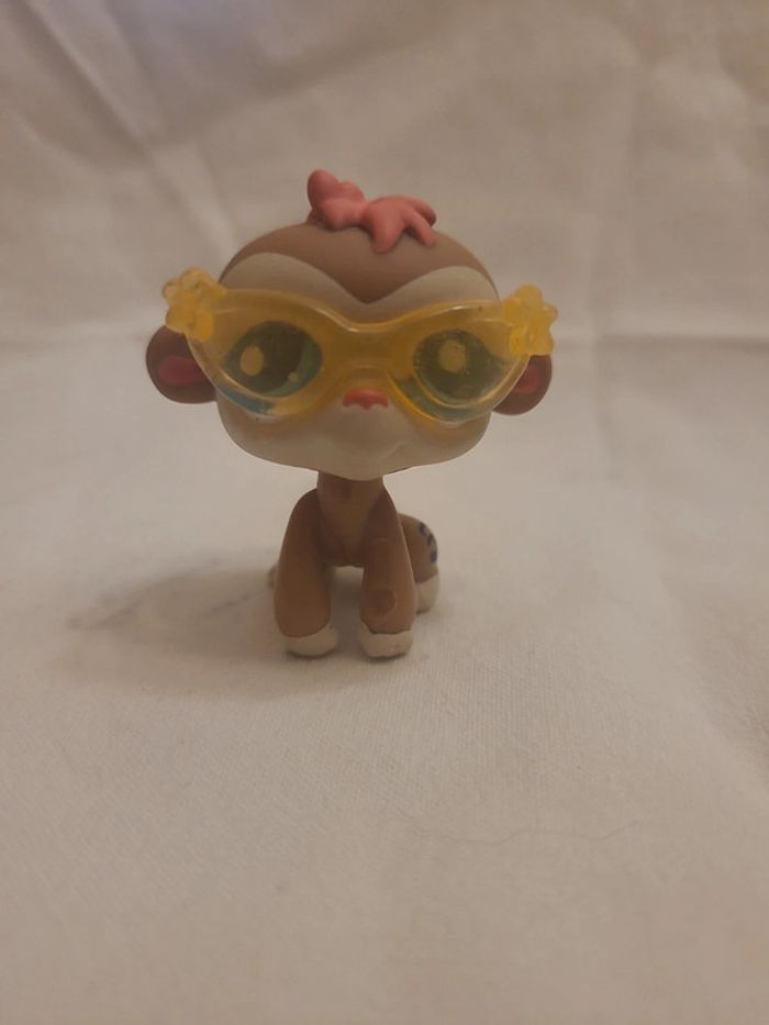 ⬇️mes autres annonces de petshop👉 #cg89petshop 😁 réductions activées des 2 articles ! un singe petshop avec une petite houpette rose et des lunettes trop classe Bon état #petshop #singepetshop #lps #chimpanzepetshop