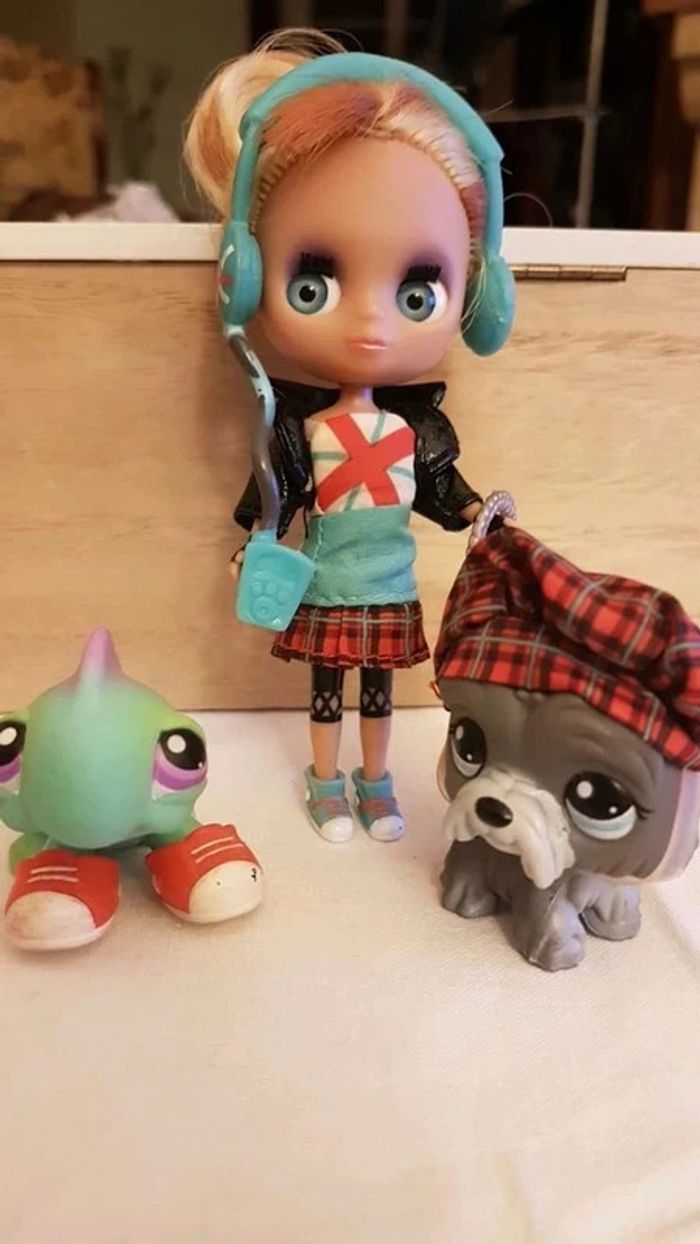 ⬇️mes autres annonces de petshop👉 #cg89petshop 😁 réductions activées des 2 articles ! Poupée Blythe style anglais en promenade avec ses 2 copains, un iguane et un chien. Elle a du style avec son ipod et ses écouteurs, mais aussi avec son sac a main et sa veste en cuir. Son iguane a mis ses basket et son chien a un chapeau assorti à la jupe de Blythe. bon état #petshop #blythepetshop #lps #iguanepetshop #chienpetshop