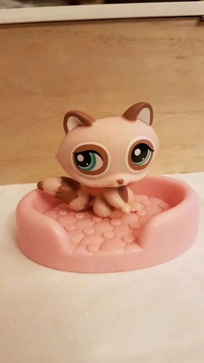 ⬇️mes autres annonces de petshop👉 #cg89petshop 😁 réductions activées des 2 articles ! un Raton laveur PetShop et son panier pour dormir Bon état #petshop #ratonlaveurpetshop #lps